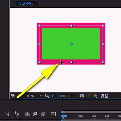 2、我再在合成窗口这里画了一个矩形出来。红色描边,绿色填充的矩形。