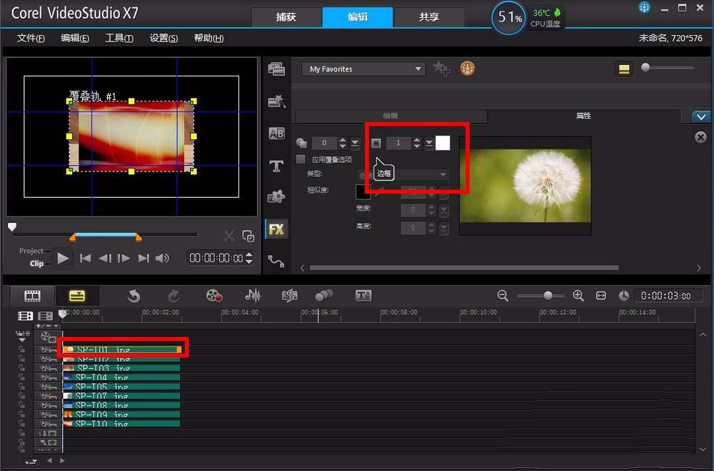 8、接着在遮罩和色度键的设置窗口,找到边框的图标,然后设置边框的大小为1,也可以大点,数值根据自己的情况而定。