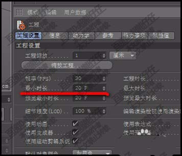 7、当然了,方法不止一种,我们还可以在工程窗口中设置帧的。开始帧与结束帧。开始帧在工程里是最小时长;结束帧在工程里是最大时长。