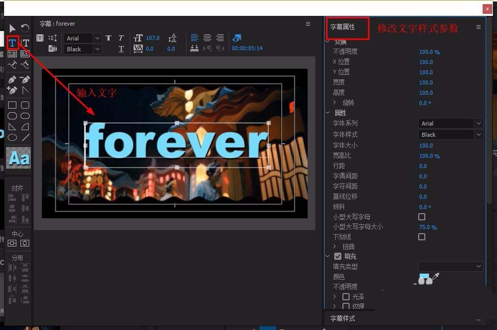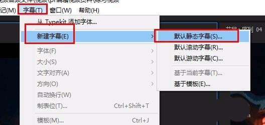 找到“字幕”-“新建字幕”-“默认静态字幕”,修改“名称”-“确定”,在“字幕编辑”面板中设置好所需文字后,即可重复“步骤2”~“步骤4”
