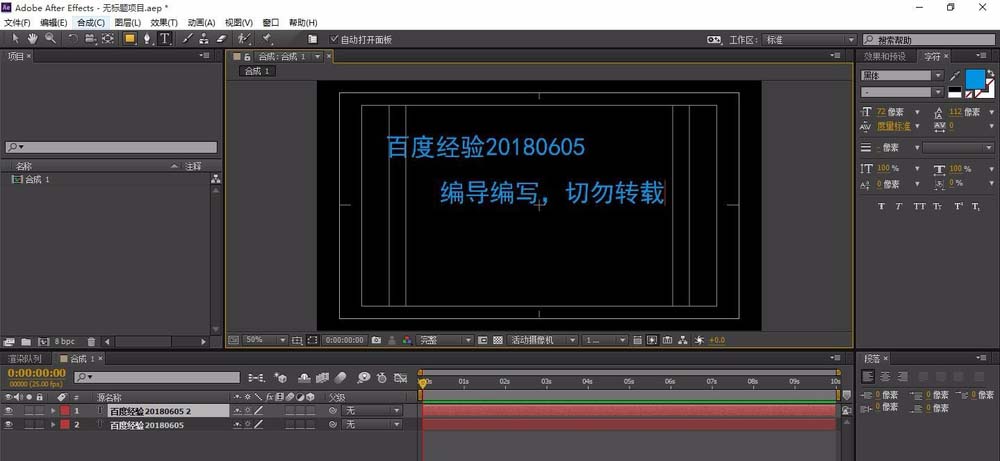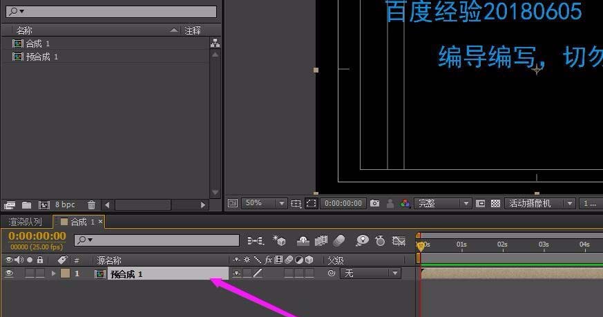 4、双击打开这个合成之后,就会变得熟悉起来,和正常的合成是一样的