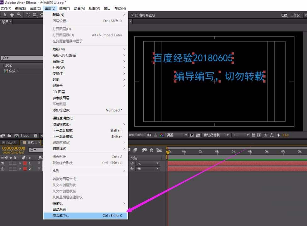 1、ae合成增加秒数合成的命令实在-图层-的最下面-预合成里面