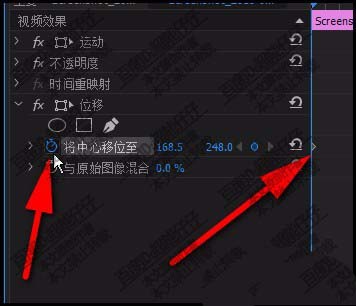 2、再打开效果面板,从视频效果中找到:位移,这一项效果