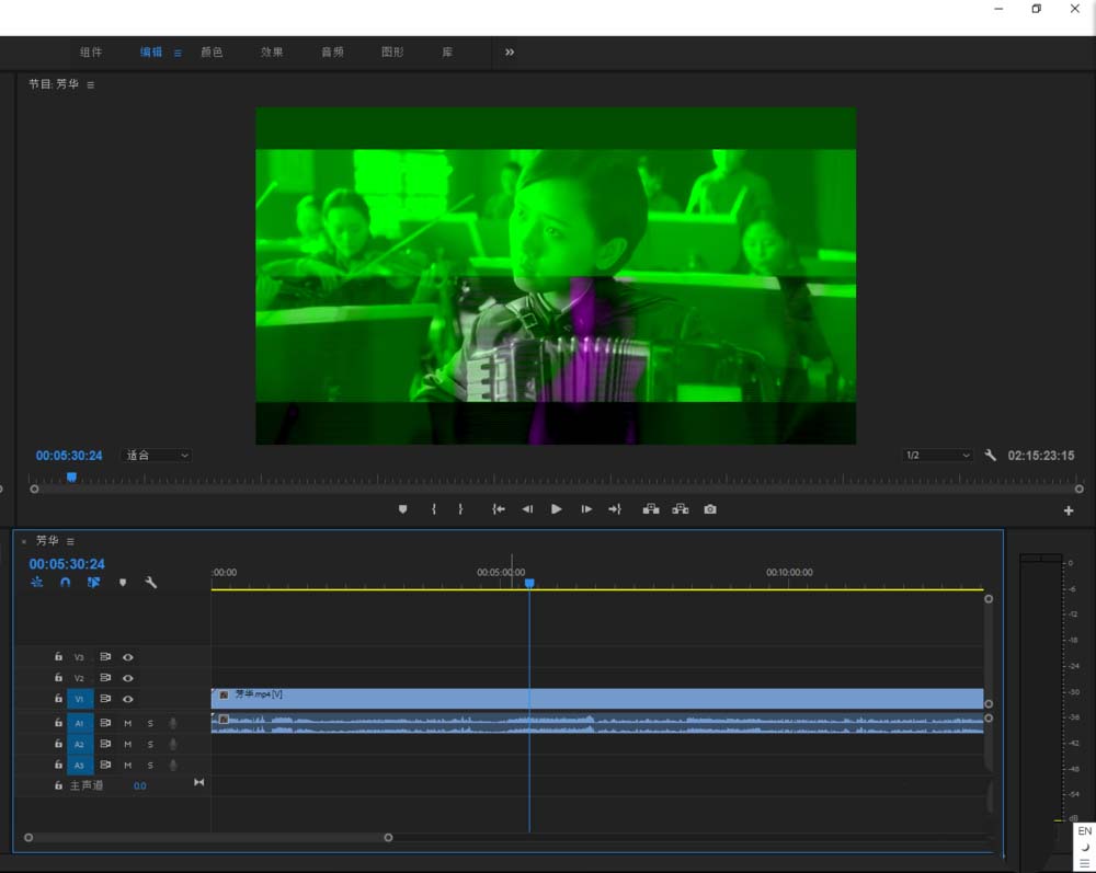 5、这时候我们有的朋友会发现,为什么右上角的预览视频花屏了?是不是Premiere软件有什么问题?还是电脑坏了?其实都不是。