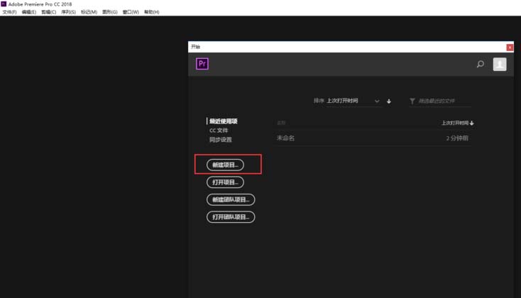 1、我们先启动Premiere软件,在开始界面中点击【新建项目】。