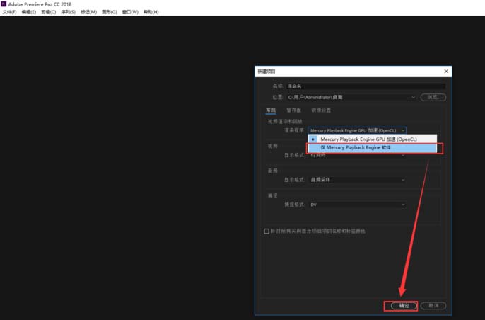 2、最简单的方法就是删掉之前建的项目,重新建立一个新的项目,在新建项目窗口中,把渲染程序修改为【Mercury playback Engine软件】,再建立项目。