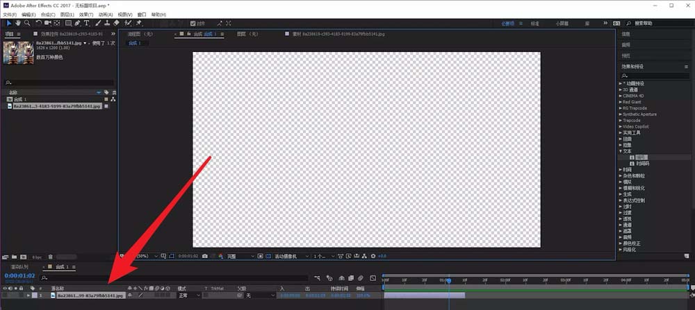 1、首先我们打开ae并导入图片,发现画布中并没有显示图片。