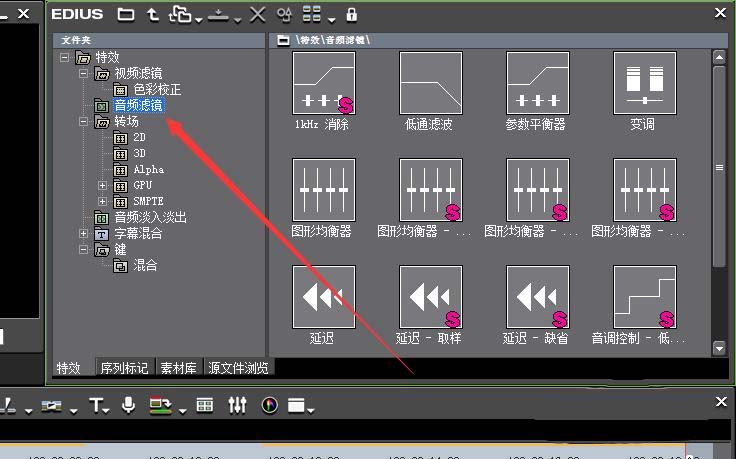 1、首先就是找到edius里面的-音频滤镜