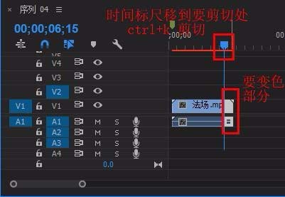 2、选取需要保留单色的部分(最好选择保留色较集中的画面),Ctrl+k剪切出这一部分