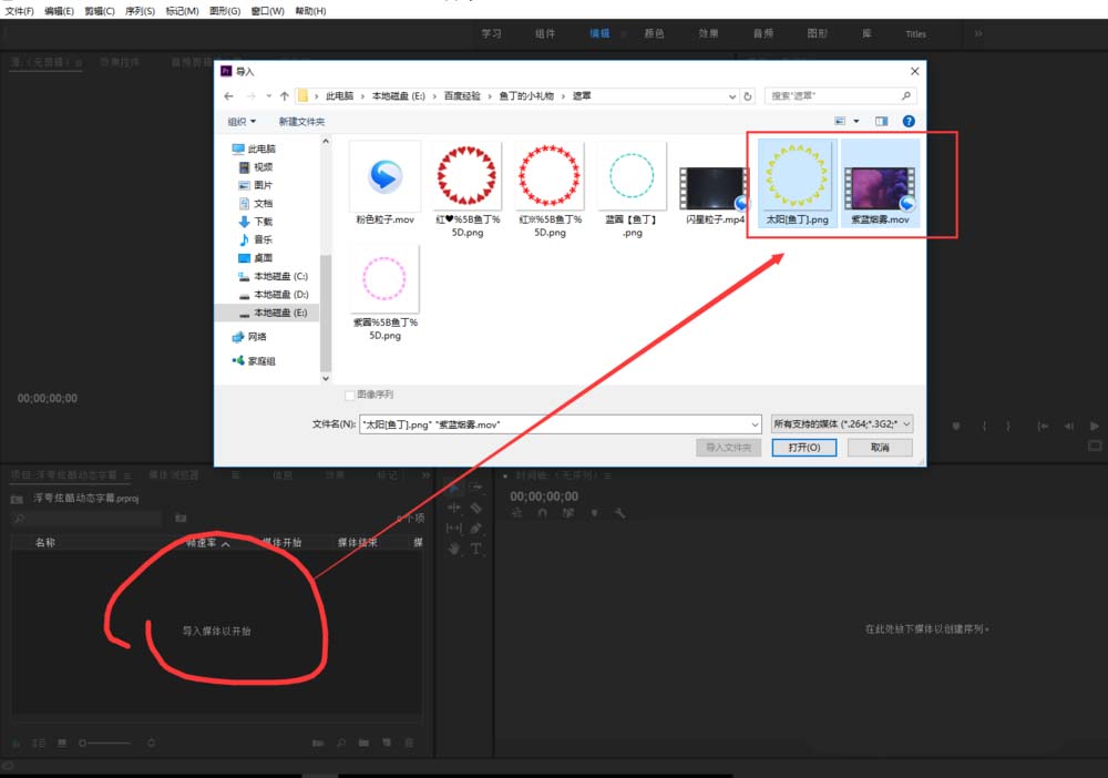 2、选择文件导入命令或者直接在项目管理窗口空白处双击鼠标左键,来导入我们需要的视频与图片素材。