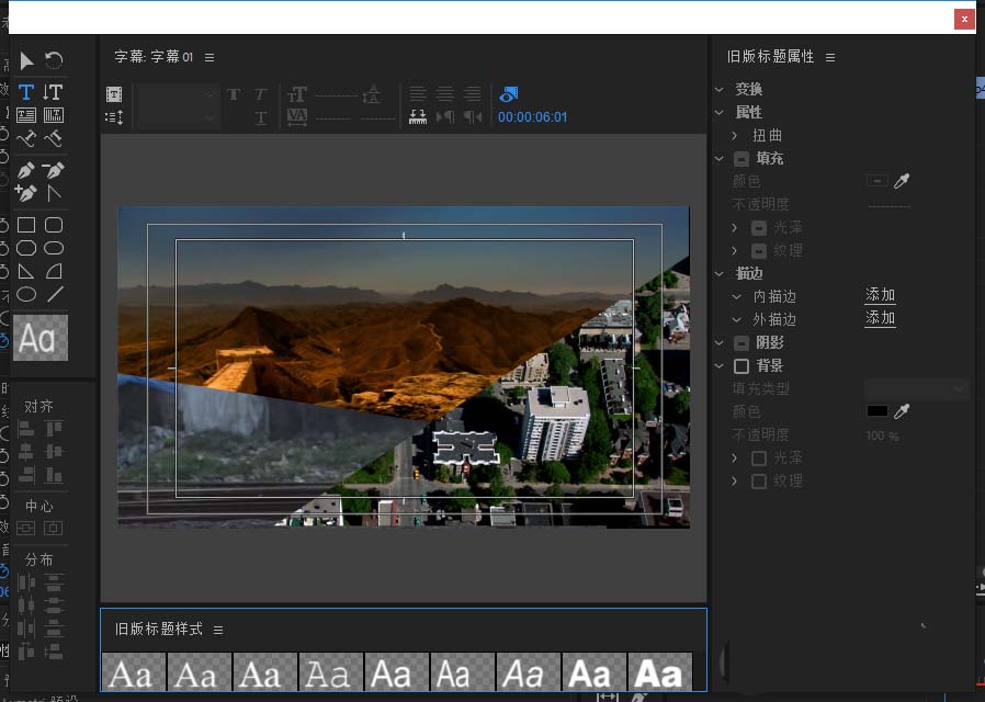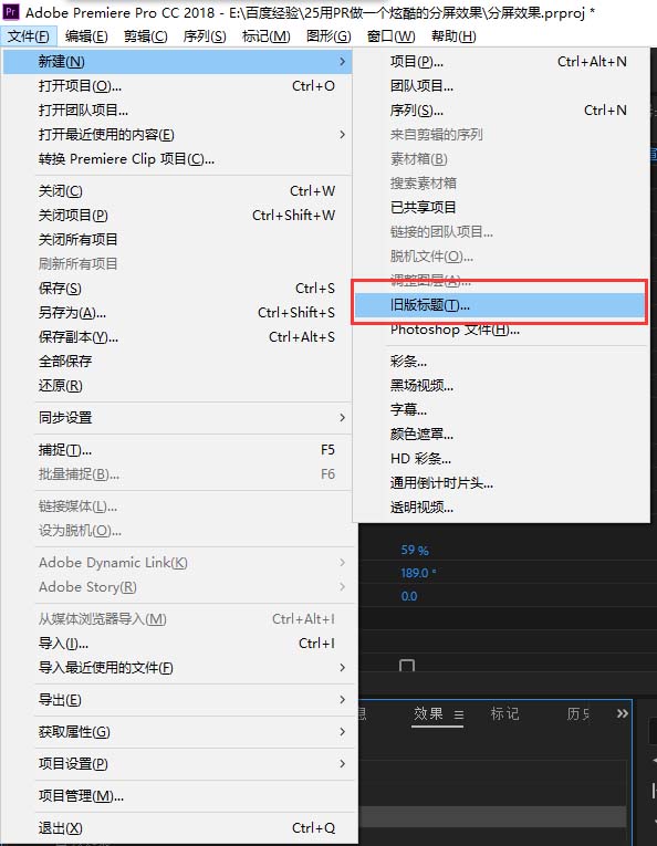 6、然后选择文件菜单,找到新建中的旧版标题,弹出字幕创建窗口,点击确定进入字幕编辑窗口。