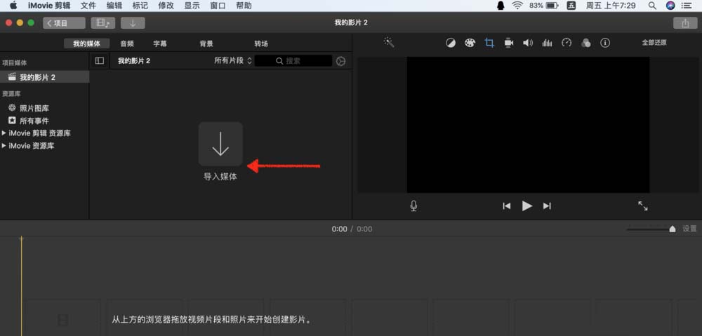 1、iMovie是MAC自带的剪辑工具,它可以让你实现一些简单的视频编辑工作。iMovie不能直接抠掉视频中的片段,但可以把视频拆成几段,再把不需要的段删除掉。首先我们打开iMovie,点击新建按钮来创建一个新项目。