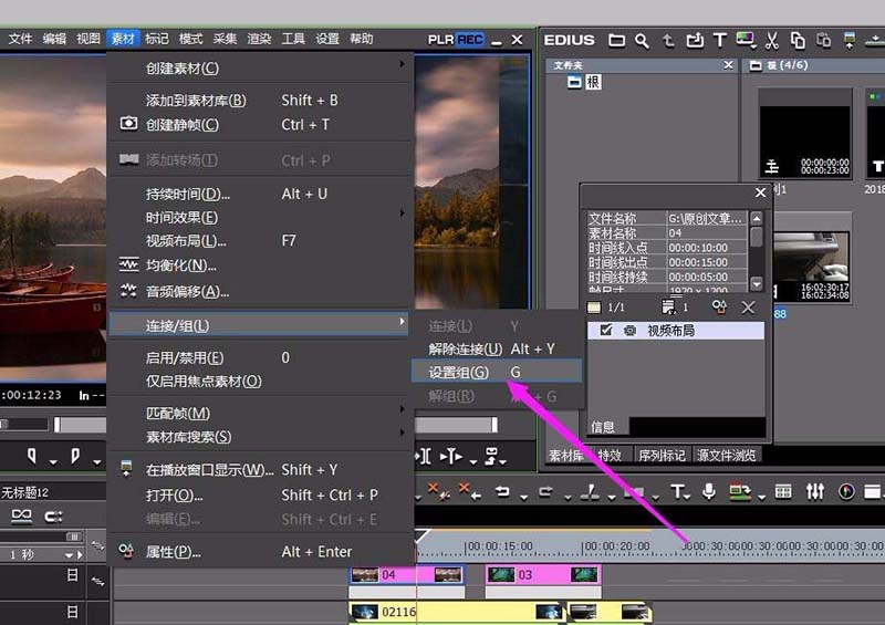 3、或者是在上面的素材里面点击-连接-设置组