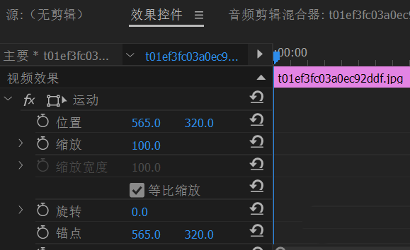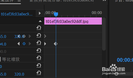 3、单击素材,左上角的区域点击效果控件,会出现如图界面。