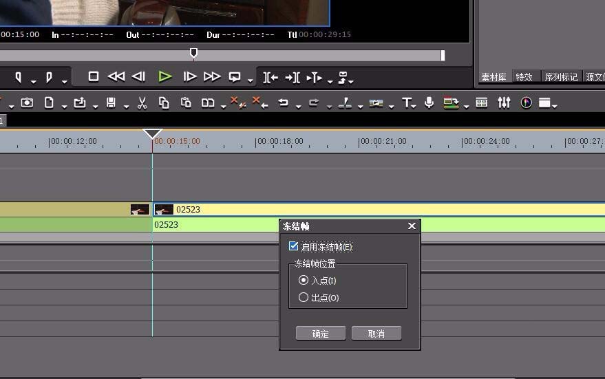3、勾选“启用冻结帧”下面选择“入点”