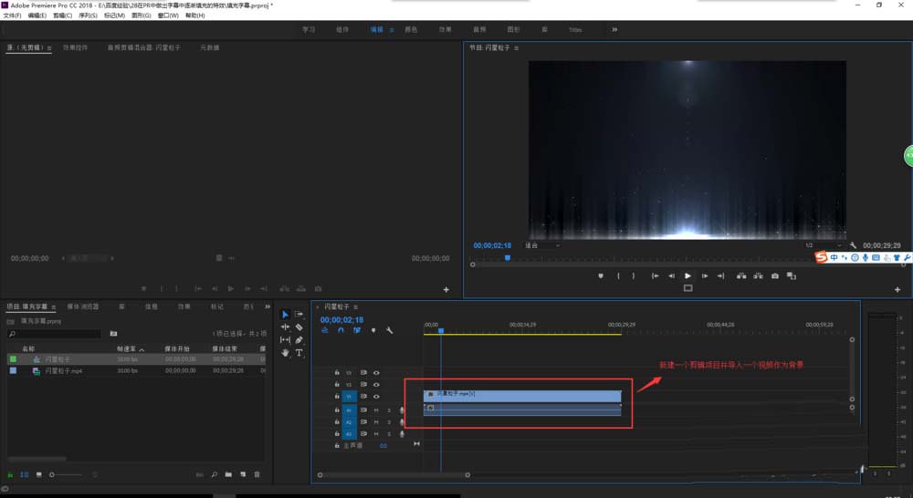 1、打开PR,新建一个剪辑项目,并在时间轴中拖入一个视频素材作为背景。
