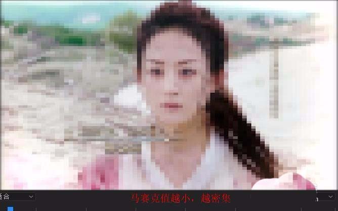 7、时间标尺放在调整图层中间位置,修改数值为“水平块”40,“垂直块”40,建立中间关键帧