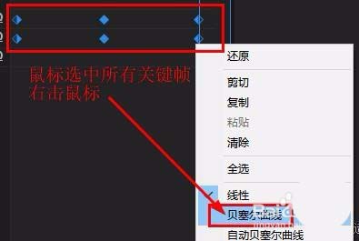 9、选中所有关键帧,右击鼠标,选择“贝塞尔曲线”,进行缓和过渡,播放即可