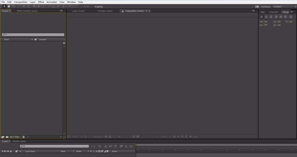 1、打开ae,新建工程项目