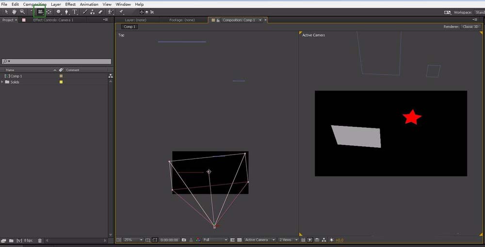 2、新建一个合成,再新建一个固态层,将图层3D图层开启