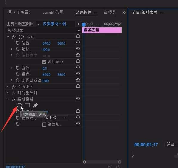 3、创建椭圆形蒙版,调节蒙版的大小。