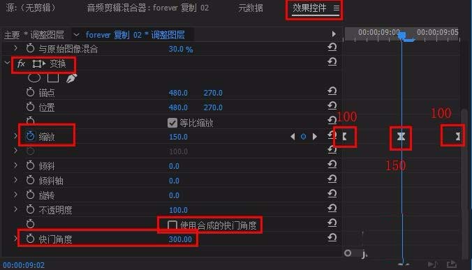 转场时间不宜过长,即两个关键帧距离不宜太远
