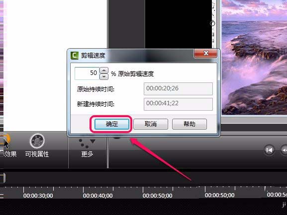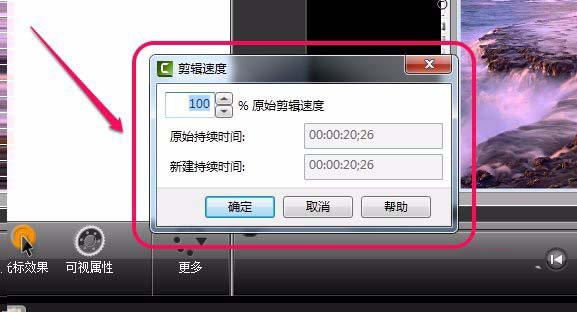 4、这时打开了“剪辑速度”对话框。