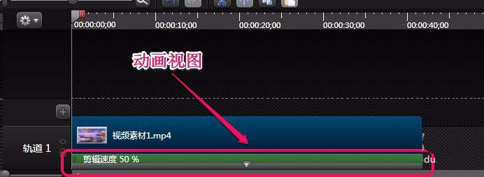 7、看到,“视频素材1”下面多了一条“动画视图”轨道,用来提示现在速度是原来的50%