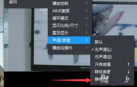 7、进行点击了声道/音量的选项之后,弹出了下一级选中为 静音 的选项。