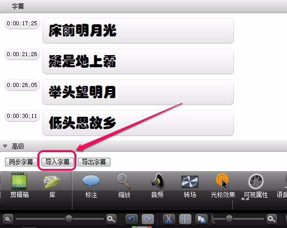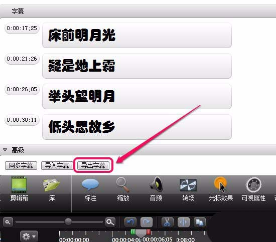 20、在“高级”项中还有“导出字幕”按钮,意思是把刚才编辑的字幕导出到计算机中保存起来。