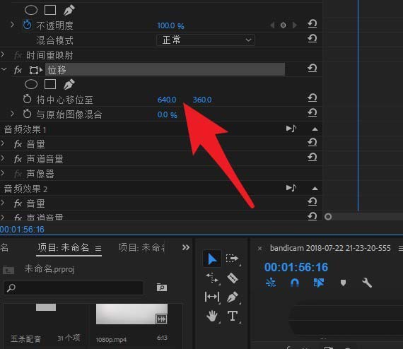 4、然后我们在左侧效果控件中找到位移控制中心点的参数进行设置。