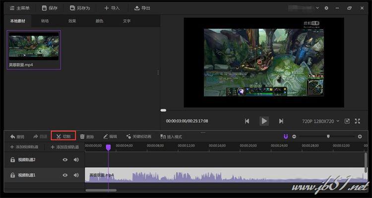 6、视频成功添加到神剪辑视频编辑轨道中。我们就可以正式开始进行视频剪辑了。点击神剪辑界面中的切割,就可以将视频进行切割;