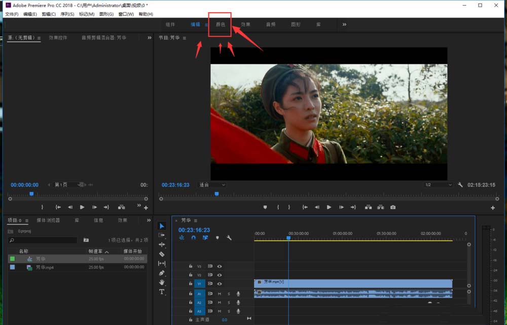 4、我们再顶部点击【颜色】,把PR界面调整为【颜色】界面。