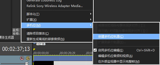 注意:Vegas最多支持36条视频轨道建立多机位素材,多机位素材中包含的轨道数越多,对计算机的配置要求越高。