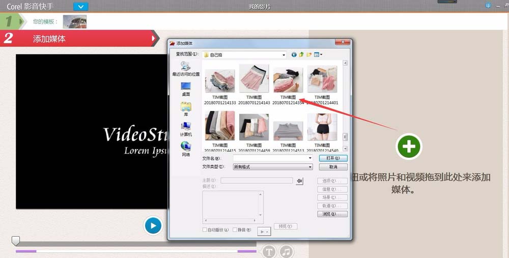 3、选好模版上,就添加上我们的素材,比如相片或者视频。