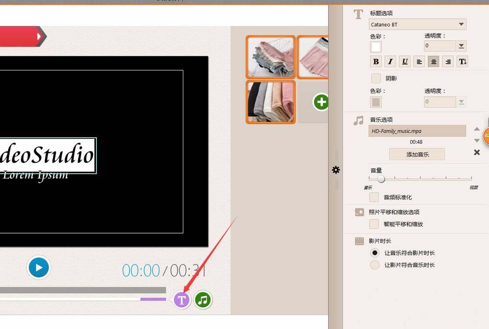 6、按旁边的设置按钮可以对文字和音乐进行设置。