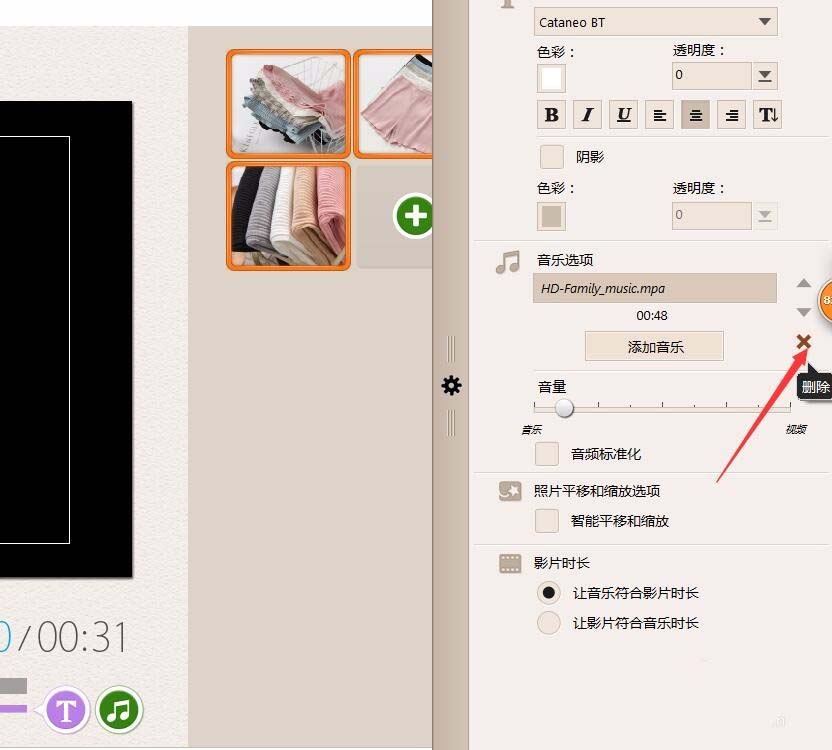 8、然后就可以设置文字的大小颜色等了,音乐也可以设置,不喜欢可以按”X"删除掉再添加新的。