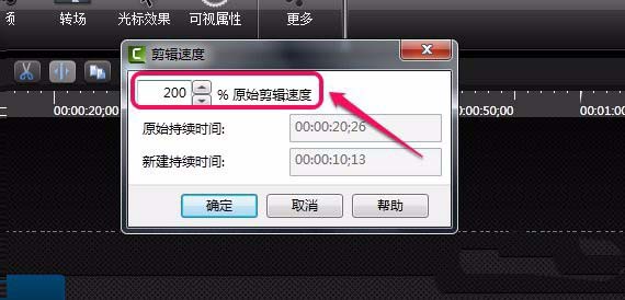 8、视频轨道下面多出了一条剪辑速度“动画视图”轨道,提示当前播放速度是原来的200%