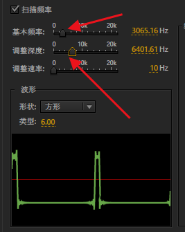 6、我们也可以在这里拖动滑块,更改基本频率和调整深度。