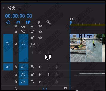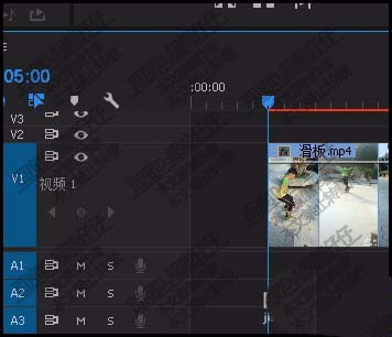 2、鼠标放在视频轨道1这里,滚动鼠标,把这里扩大。