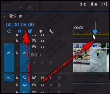 3、在时间线这里, 把播放头移到5秒这个位置上。