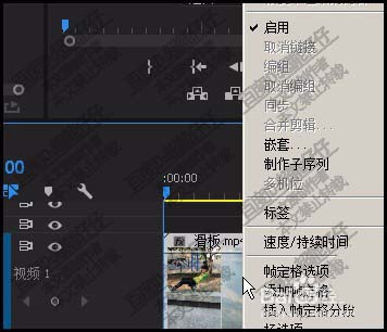 4、鼠标放右视频素材这里, 右击,弹出一列菜单。