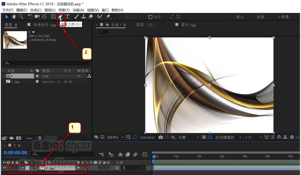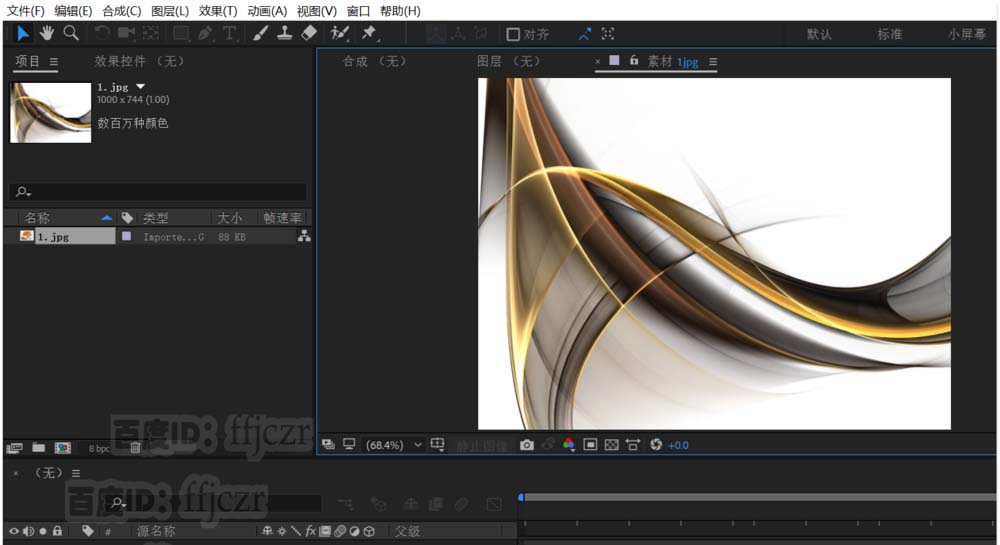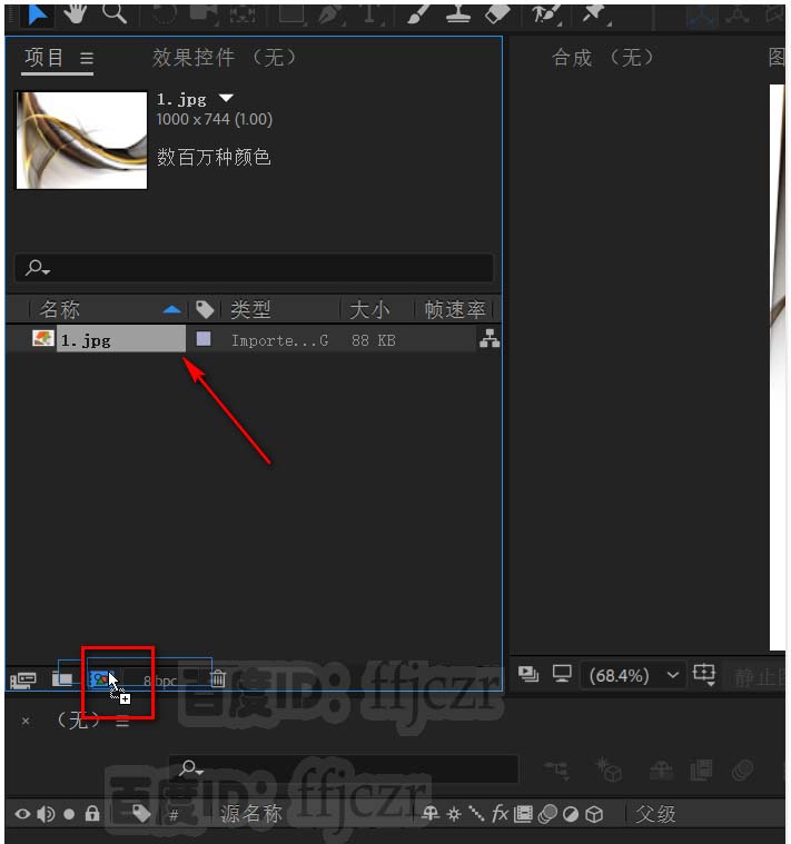 2、用图片新建一个合成,拖动图片到 合成小图标松开即可生成一个新的合成。