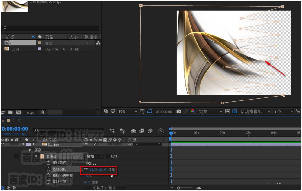 4、锯齿部分太过生硬,点开蒙版列表,将其中的蒙版羽化修改为50左右。