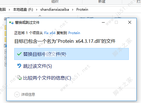 7、安装完成后注意不要运行软件,将破解文件夹中的Protein_x64.3.17.dll复制到软件安装目录中Protein文件夹中,点击替换目标中的文件