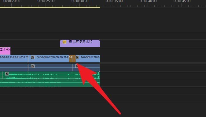 4、将插件拖动到需要制作转场的两段视频相交部分。