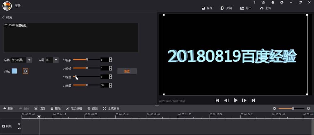 6、在视频右上角的视频预览区域,就可以进行3D放大消失文字的预览了。