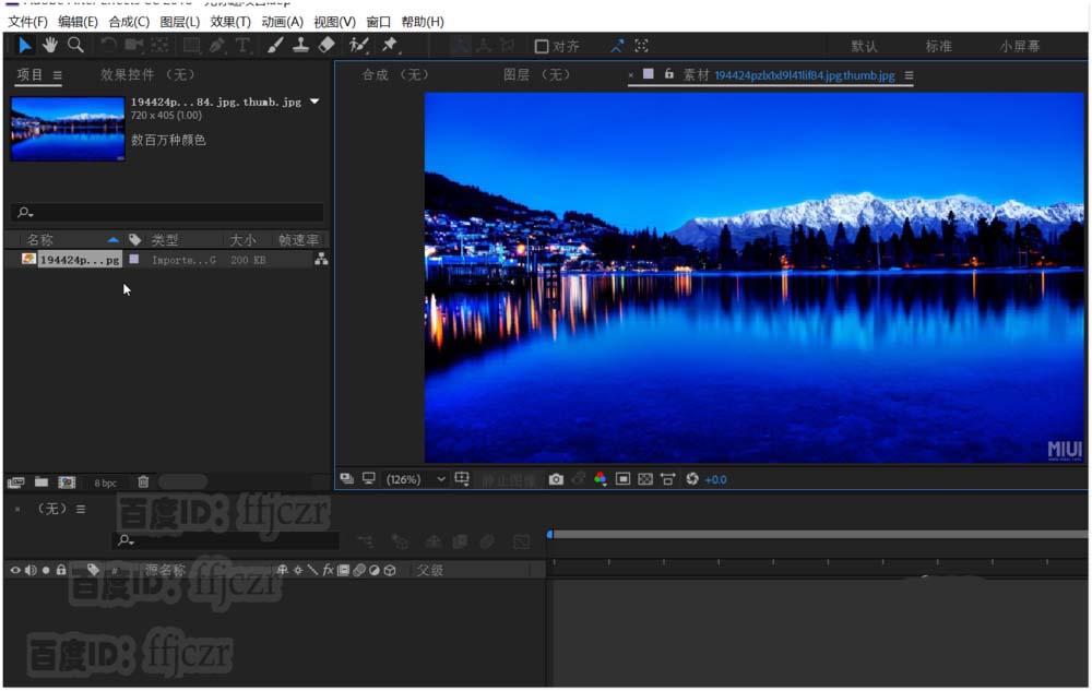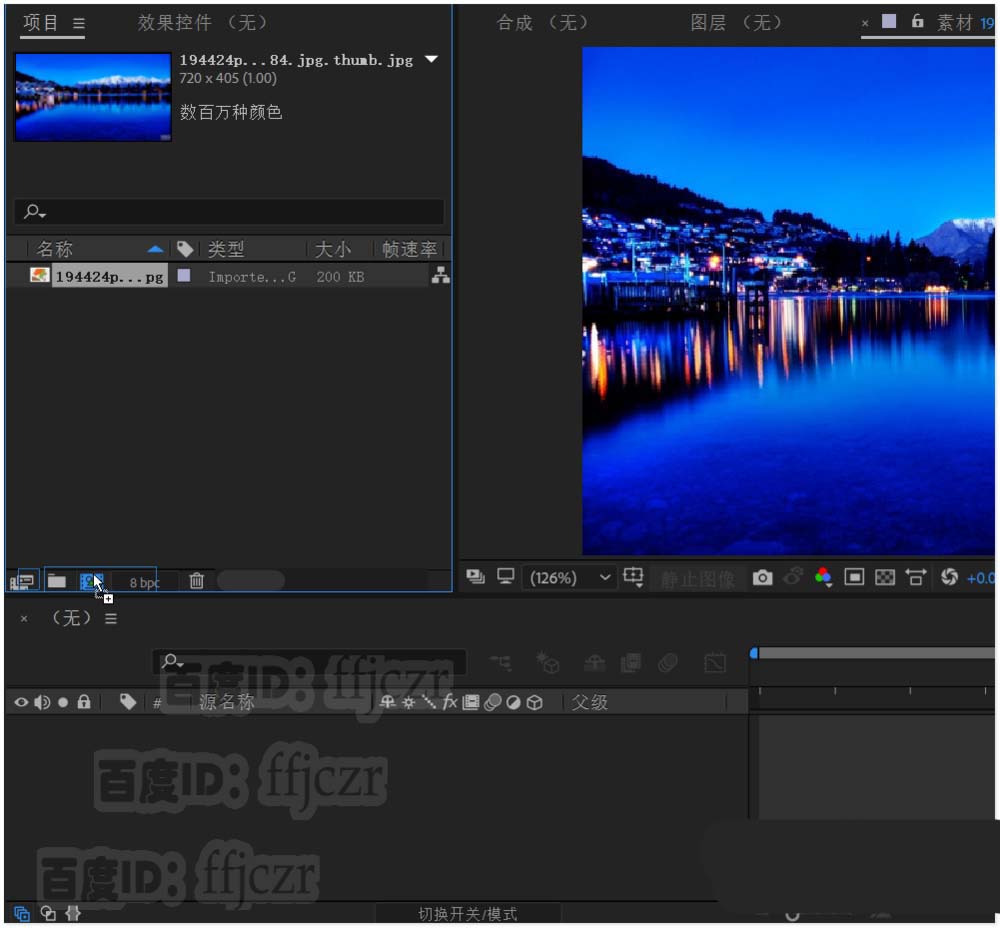 1、素材库中导入一张图片,用图片大小作为配置参数新建一个合成。