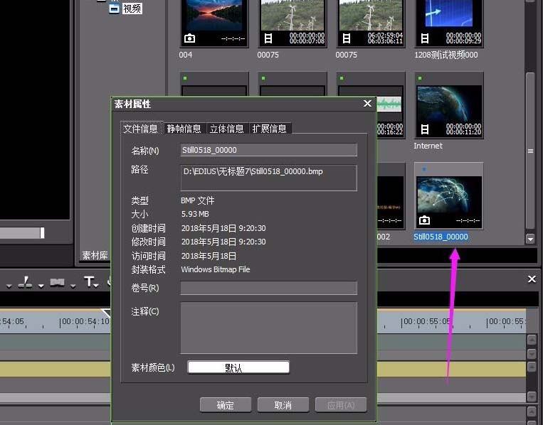 Edius怎么在素材库中创建静帧?
