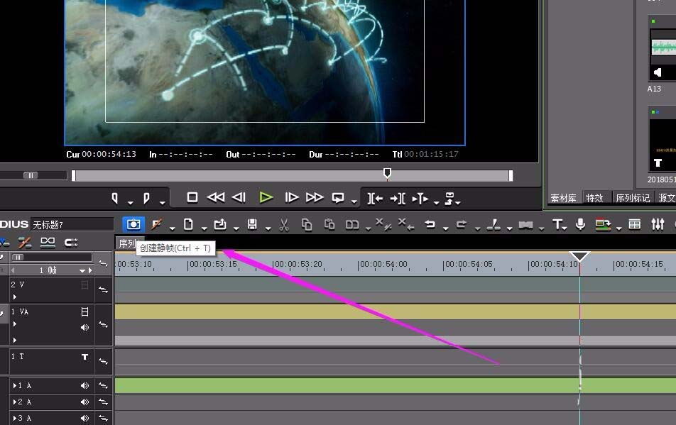 6、还可以把这个-创建静帧-移动到时间线上,进行快捷操作使用